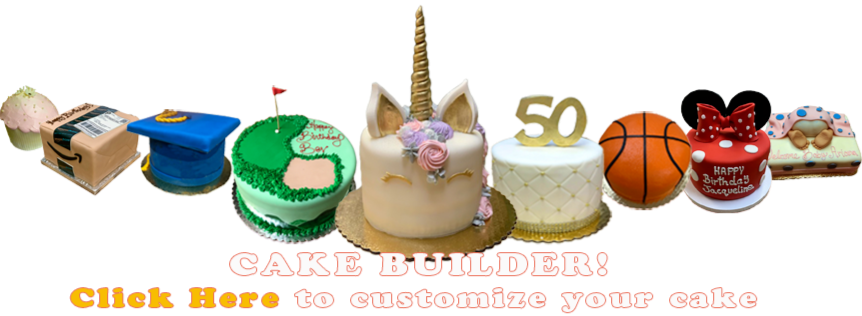 Create a cake all on your own! Add your choice of fillings, frostings, fruit and decorations from our pre-selected options to customize the perfect cake for your event.We’ve added several photos of our cakes in order to give you an idea of the design options available.